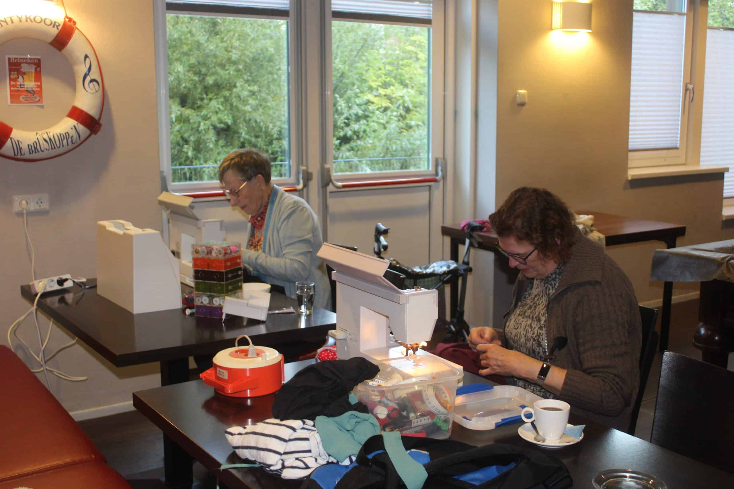 En nu 10 jaar later mogen we concluderen dat het ons aardig lukt om de trein op de rails te houden, de ene keer is het “smoar drok” en komen we, en met name onze dames met hun naaimachines, tijd te kort. Een volgende keer krijgen we meer koffie door de keel dan gereedschap in handen. Het leuke is dat er van alles ter reparatie wordt aangeboden, variërend van fietsen, koffiezetters, cd spelers en stofzuigers tot het slijpen van (tuin)gereedschap en het aanzetten van knopen en ritsen bij kleren. Vaak een uitdaging om tot het gewenste resultaat te komen. Echter, ook het sociale aspect krijgt op deze morgens ruim aandacht aan de bar met mooie gesprekken, koffie en voor de kinderen limonade. Er zijn mensen uit ons dorp die alleen hiervoor even gezellig langs komen tussen 10 en 12 uur.